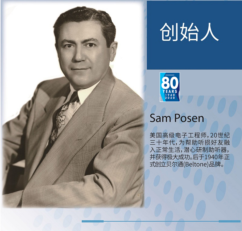 美國貝爾通(英文名:Beltone)的創始人Sam Posen為了幫助一位聽損朋友,設計開發出首款助聽器,美國貝爾通因愛而生,走過80個年頭,直至現在,仍然譜寫著屬于自己的輝煌篇章。