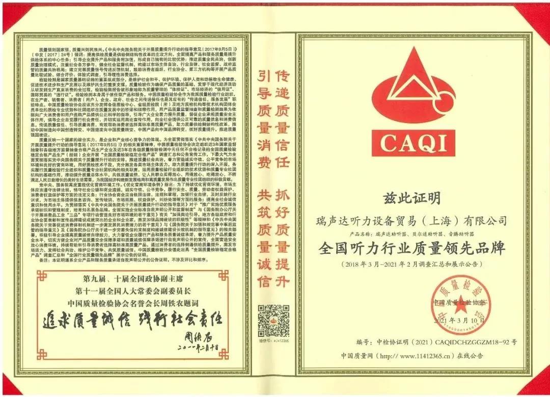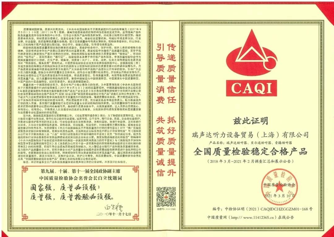 <span style="white-space:pre"> </span>質(zhì)量是企業(yè)和產(chǎn)業(yè)核心競(jìng)爭(zhēng)力的體現(xiàn)。<br /><br /> 作為對(duì)貝爾通助聽(tīng)器產(chǎn)品質(zhì)量和服務(wù)的肯定,2021年中國(guó)質(zhì)量檢驗(yàn)協(xié)會(huì)再次向貝爾通助聽(tīng)器頒發(fā)了三項(xiàng)榮譽(yù)證書(shū),以期能引導(dǎo)用戶(hù)選擇高標(biāo)準(zhǔn)高質(zhì)量的產(chǎn)品,傳遞質(zhì)量信任,優(yōu)化消費(fèi)環(huán)境。<br /><br /> 這三項(xiàng)榮譽(yù)包括“全國(guó)產(chǎn)品和服務(wù)質(zhì)量誠(chéng)信示范企業(yè)”“全國(guó)聽(tīng)力行業(yè)質(zhì)量領(lǐng)先品牌”“全國(guó)質(zhì)量檢驗(yàn)穩(wěn)定合格產(chǎn)品”。<br /><br /> 除了貝爾通助聽(tīng)器,瑞聲達(dá)和音騰助聽(tīng)器亦同獲此譽(yù)。<br /><br /> CAQI<br /><br /> 全國(guó)產(chǎn)品和服務(wù)質(zhì)量誠(chéng)信示范企業(yè)<br /><br /> 全國(guó)聽(tīng)力行業(yè)質(zhì)量領(lǐng)先品牌<br /></span><p style="text-align: left;"><span style="font-size:16px;"> 全國(guó)質(zhì)量檢驗(yàn)穩(wěn)定合格產(chǎn)品</span></p><p style="text-align: center;"><img src="/upfiles/202103160512466507.jpg" width="640" alt="" /> <img src="/upfiles/202103160512463998.jpg" width="640" alt="" /> <img src="/upfiles/202103160512465078.jpg" width="640" alt="" /><br /></p><p style="text-align: center;"><br /></p>" />