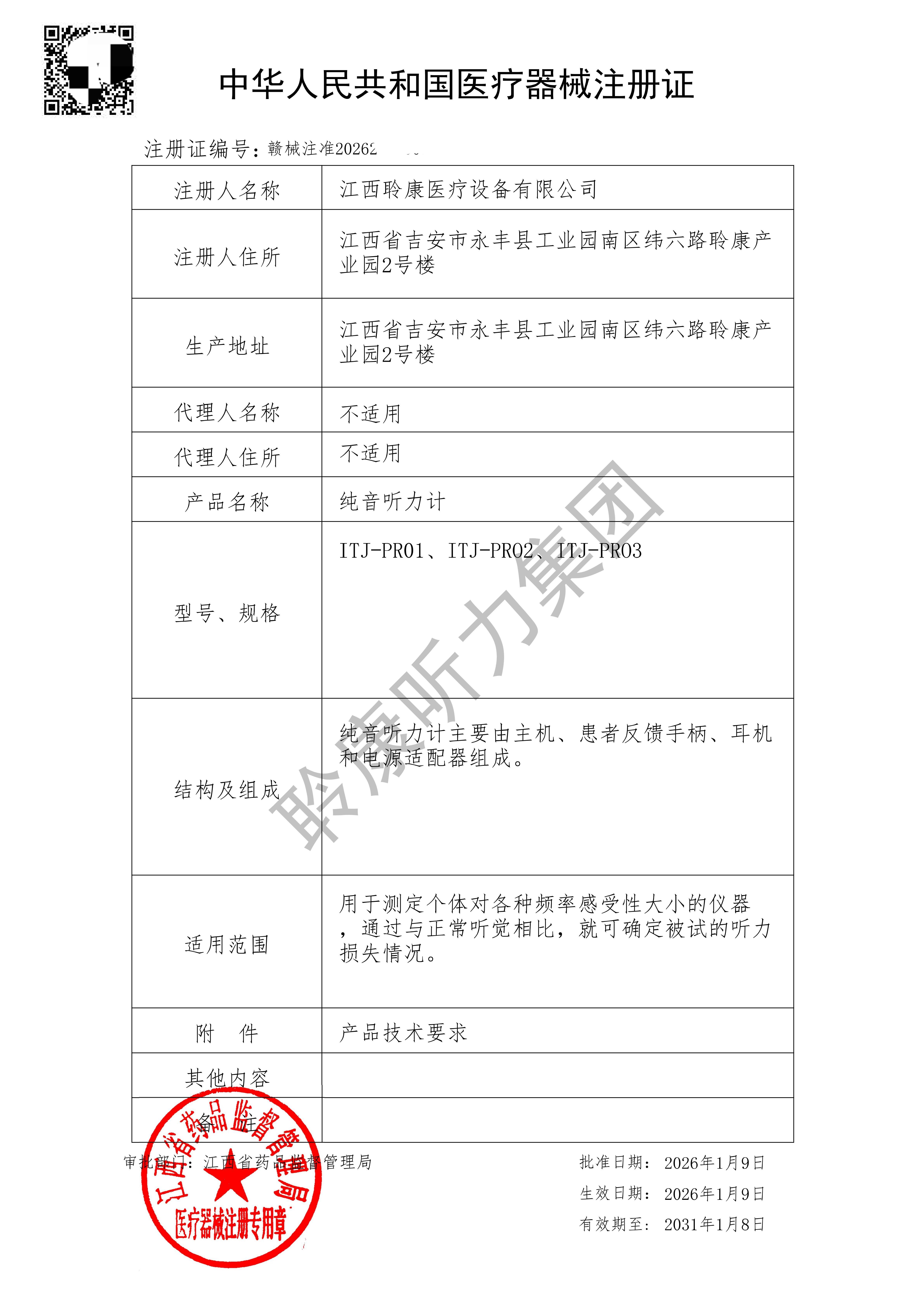 聆康聽力集團旗下高端醫療設備品牌“音特捷”再傳捷報——純音聽力計(型號:ITJ-PR01、ITJ-PR02、ITJ-PR03)正式通過國家藥監局審批,成功獲得《中華人民共和國醫療器械注冊證》。作為繼中耳功能分析儀、耳聲發射儀后的第三張國家級“通行證”,這標志著“音特捷”品牌在高端聽力檢測診斷領域的技術突破,正式邁入國產設備全面替代進口的戰略新階段。